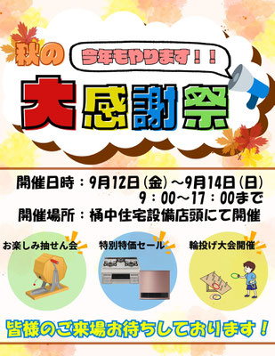 桶中住宅設備の自店イベント!秋の大感謝祭を今年も開催いたします♪
